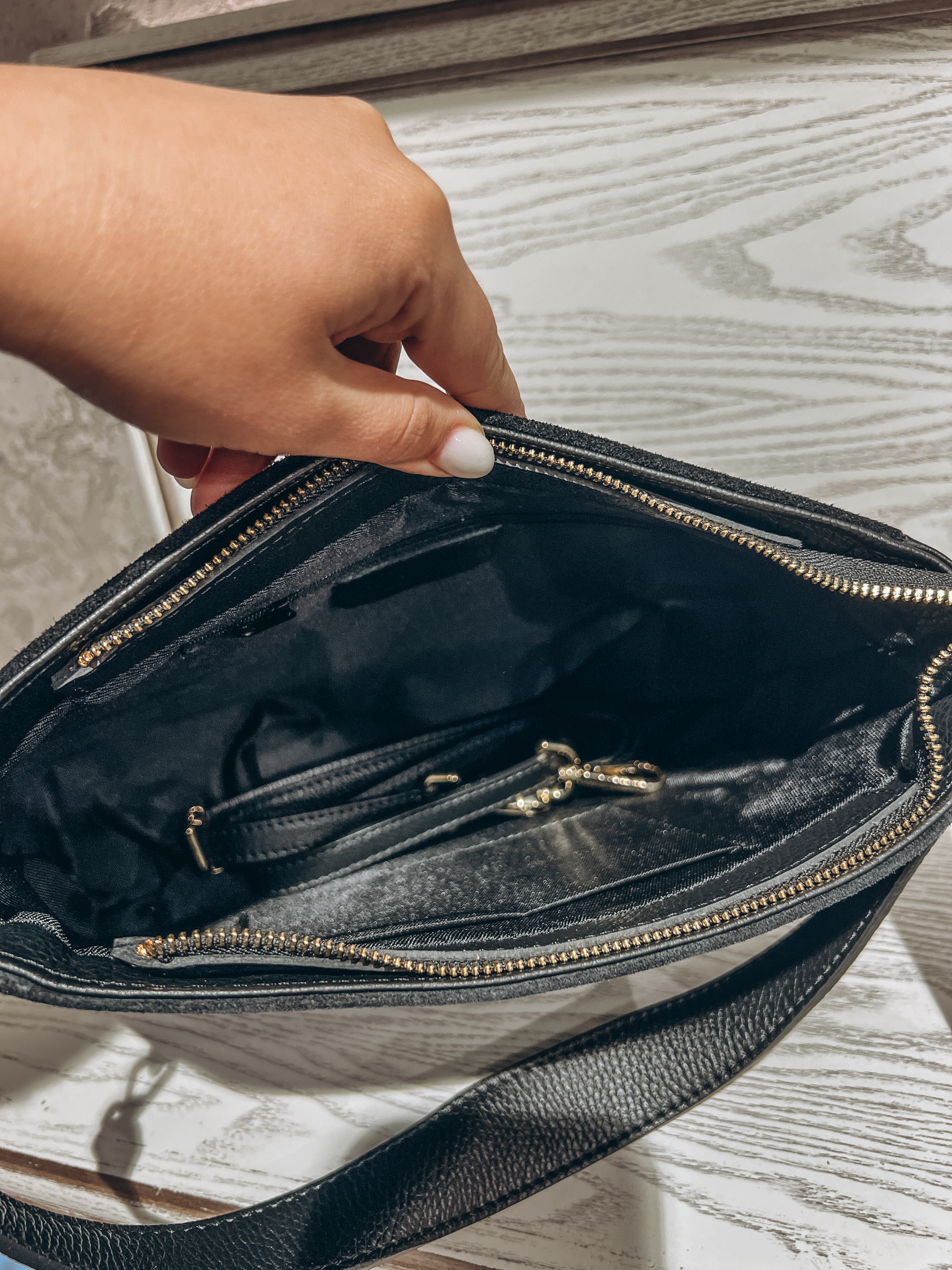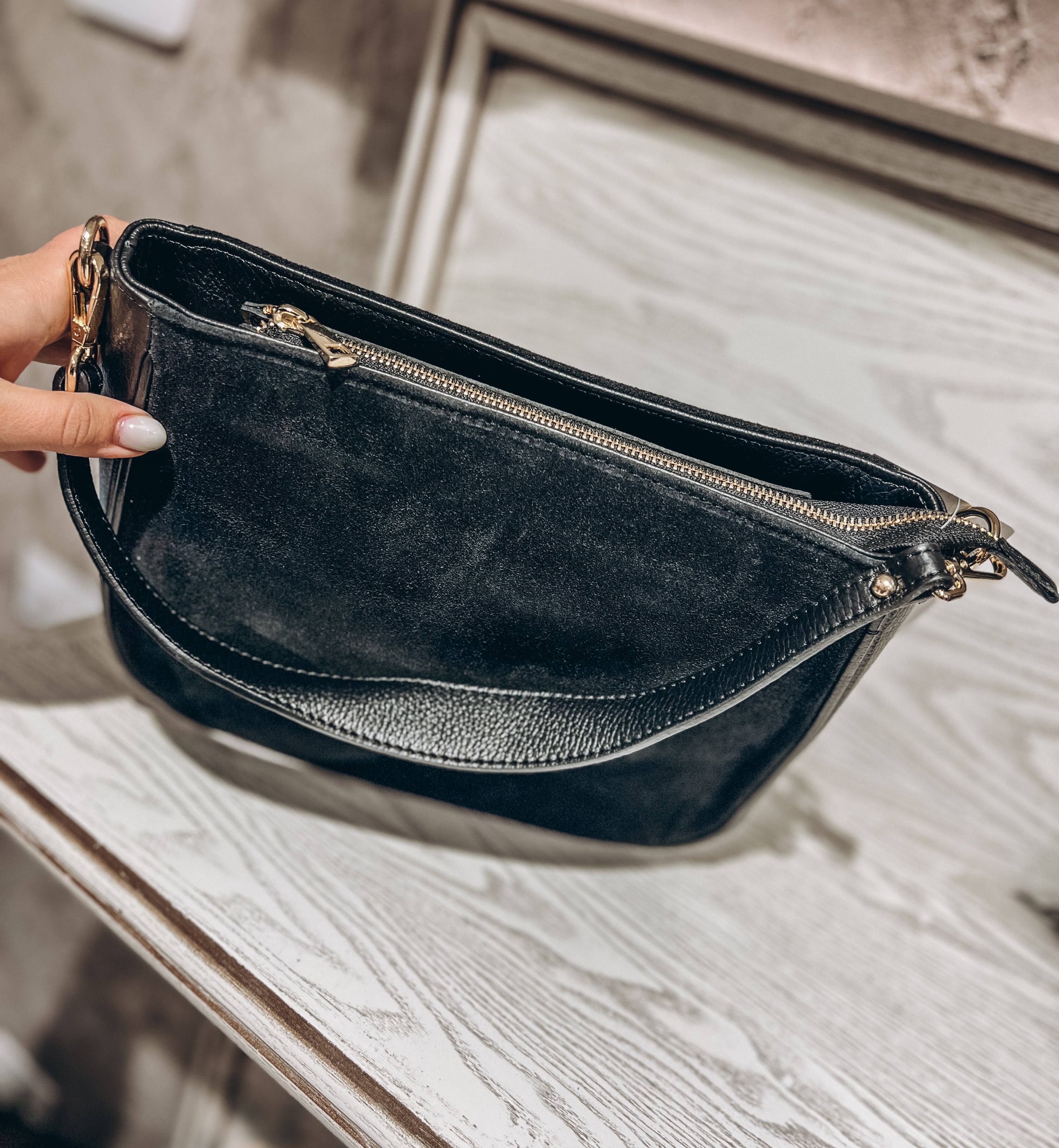 Natūralios odos rankinė. Turi ilgą rankeną