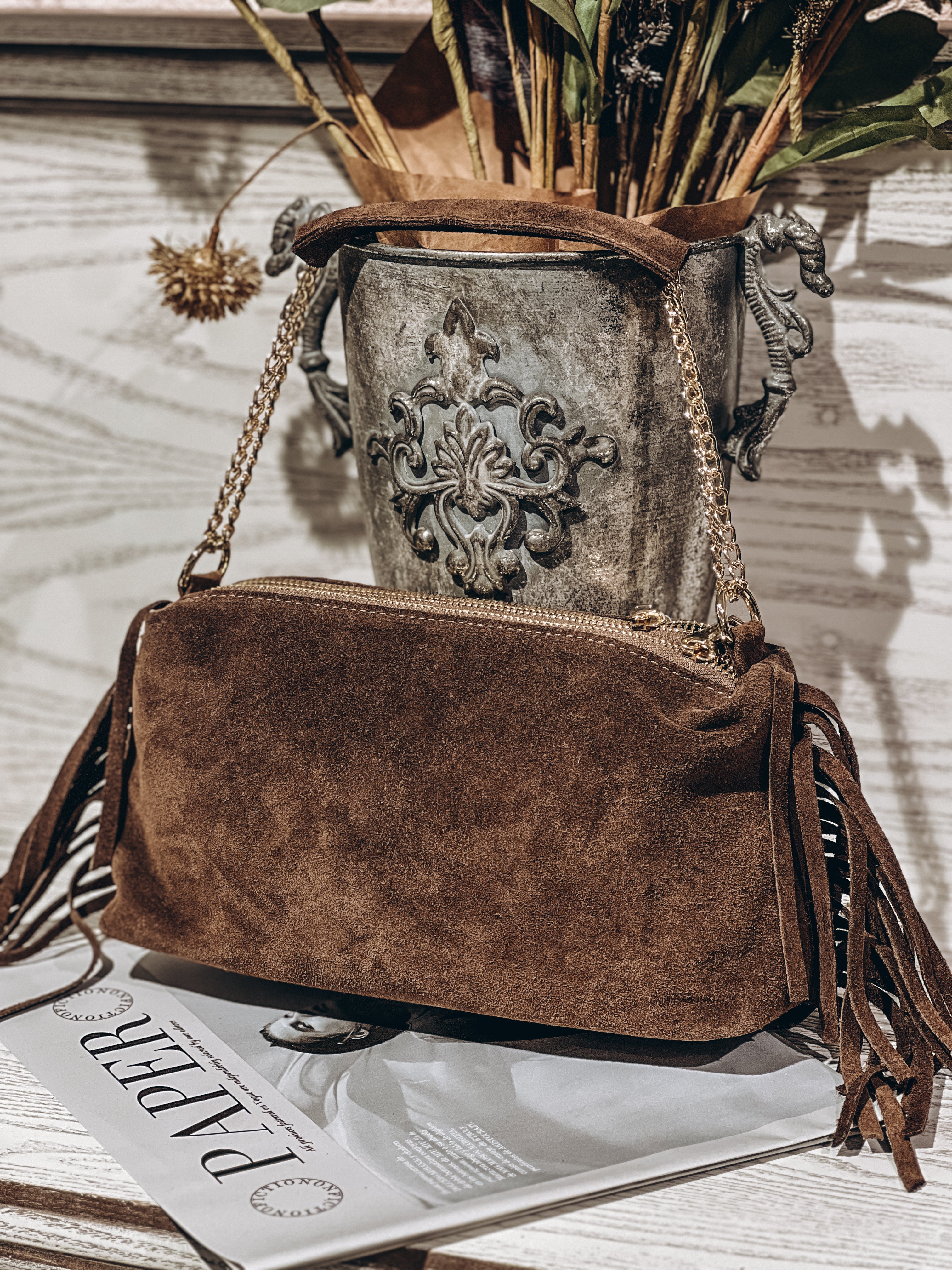 Natūralios odos rankinė. Turi ilgą rankeną